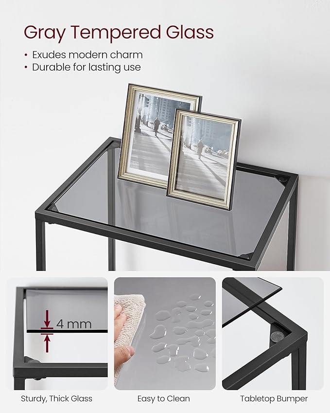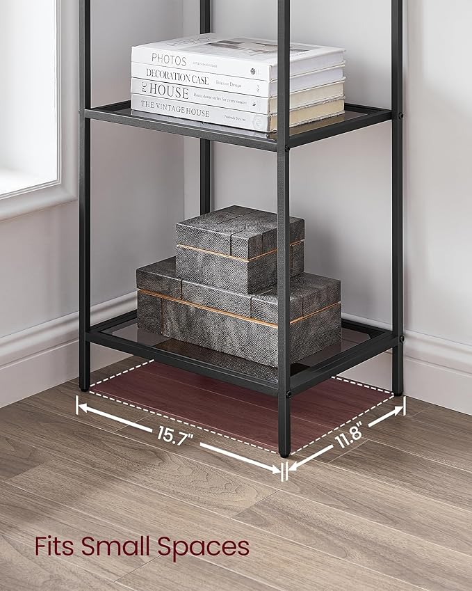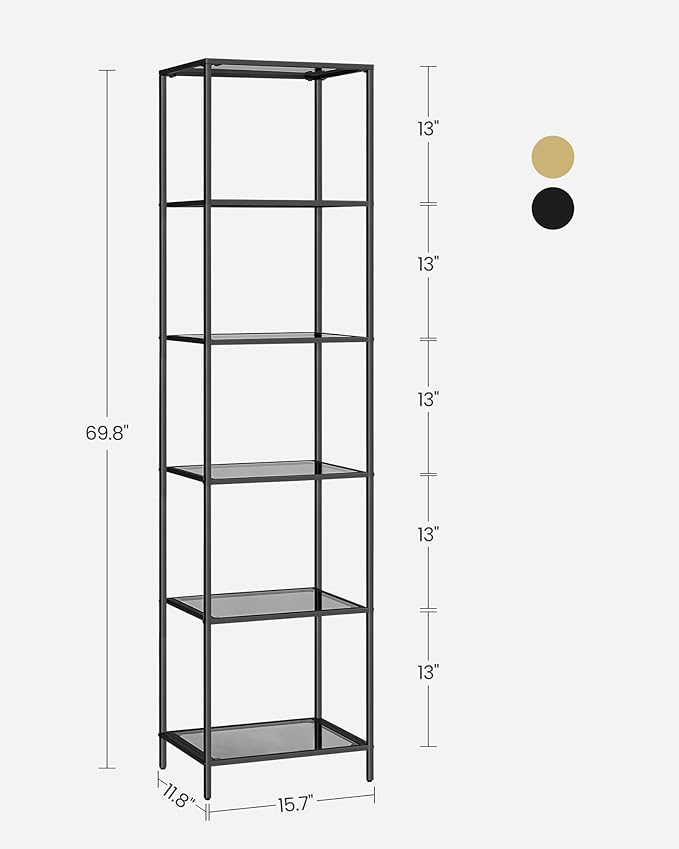 VASAGLE Bookcase, 6-Tier Bookshelf, Slim Shelving Unit for Bedroom, Bathroom, Home Office, Tempered Glass, Steel Frame, Ink Black and Slate Gray ULGT500G01