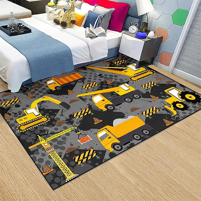 About This Easy to Clean: car rugs for kids made from high-quality materials, construction decor for boys room rug is...