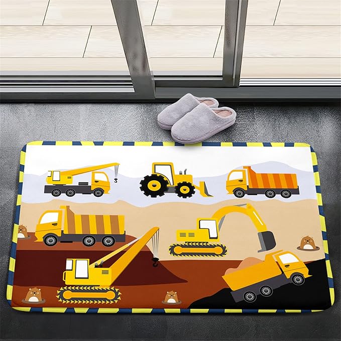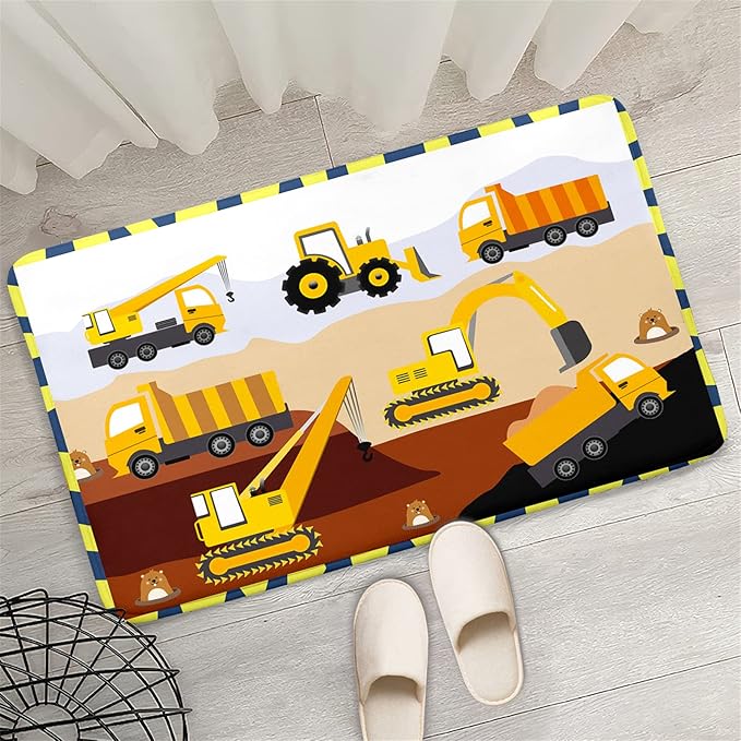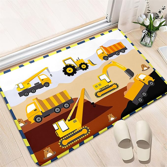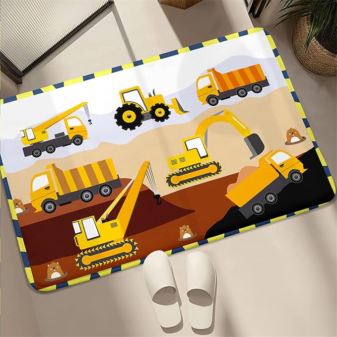 About This Easy to Clean: car rugs for kids made from high-quality materials, construction decor for boys room rug is...