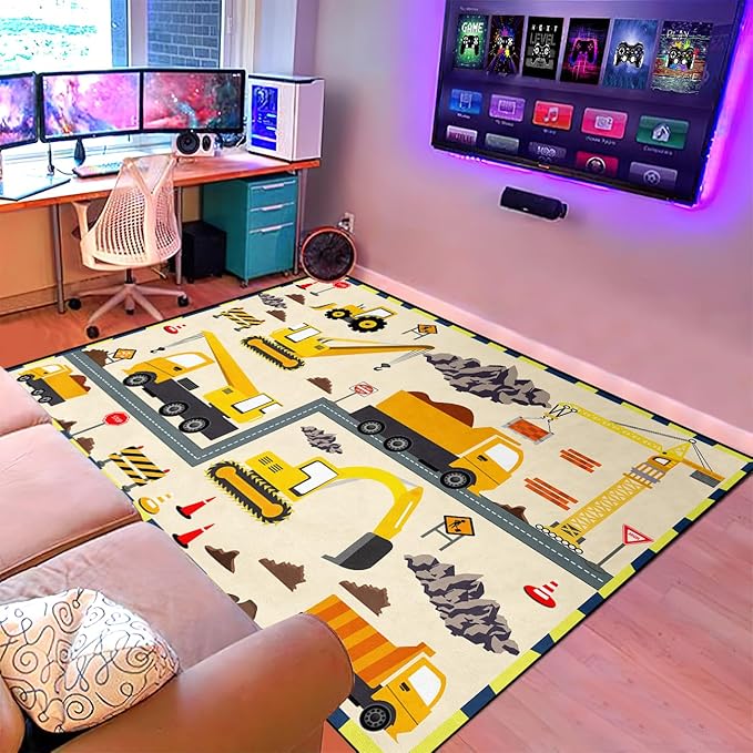 Construction Play Mat Car Rug Play Mat Construction Rugs for Boys Room Car Rug for Boys Room Construction Decor for Boys Room Playroom Rug for Livingroom 3'×5'