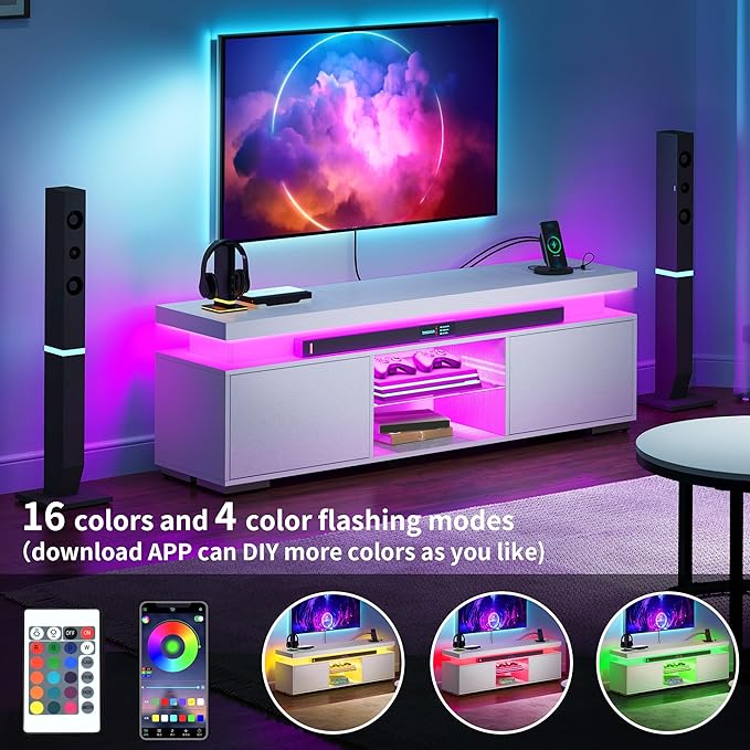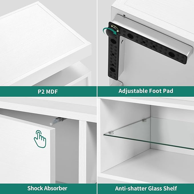 About This P2 Mdf This TV shelves fits for 65/60/55/50/43” TV, TV Stand with 2 RGB LED System, one is...