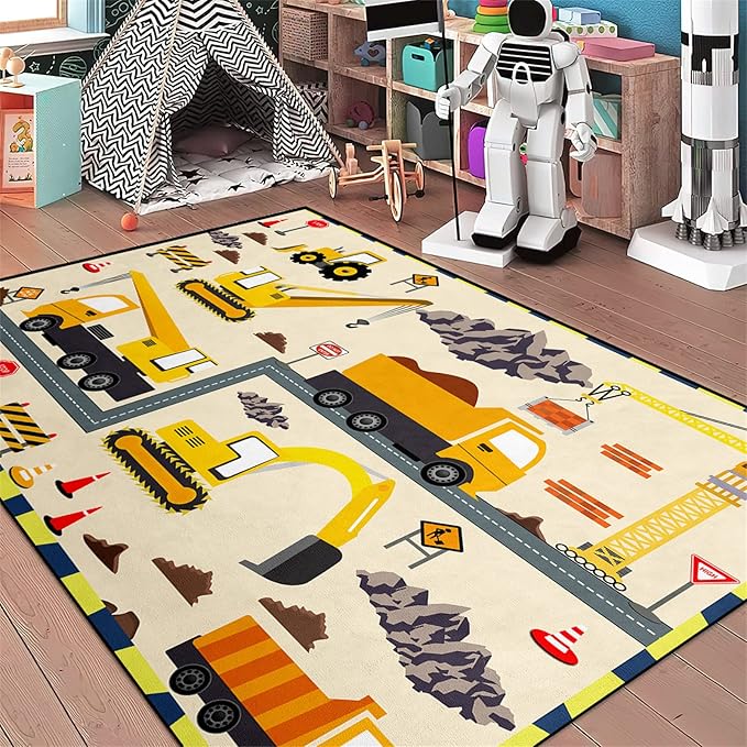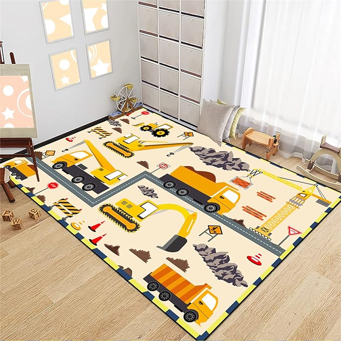 Construction Play Mat Car Rug Play Mat Construction Rugs for Boys Room Car Rug for Boys Room Construction Decor for Boys Room Playroom Rug for Livingroom 4'×5'