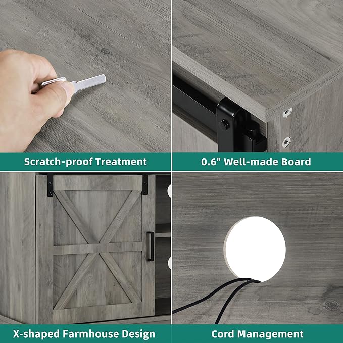 YITAHOME Farmhouse TV Stand for 65/60/55 Inch, Modern Entertainment Center with Sliding Barn Door, Wood TV Media Console Storage TV Cabinet for Living Room for 300lbs, Rustic Grey
