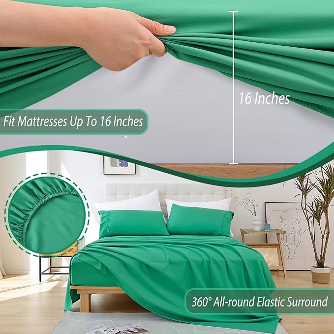 Full Sheet Set - 4 Piece Soft Breathable Bed Sheets for Full Size Bed, Extra Deep Pocket Lxuury Brushed Sheets, Cooling Hotel Bedding Sheets and Pillowcases, Wrinkle Free Oeko-Tex Sheets