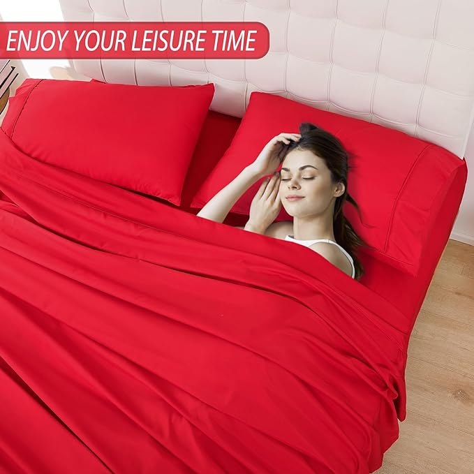 Whitney Home Textile Queen Sheet Set - 4 Piece Soft Breathable Bed Sheets for Queen Size Bed, Deep Pocket Lxuury Brushed Sheets, Hotel Bedding Sheets and Pillowcases, Wrinkle Free Oeko-Tex Sheets