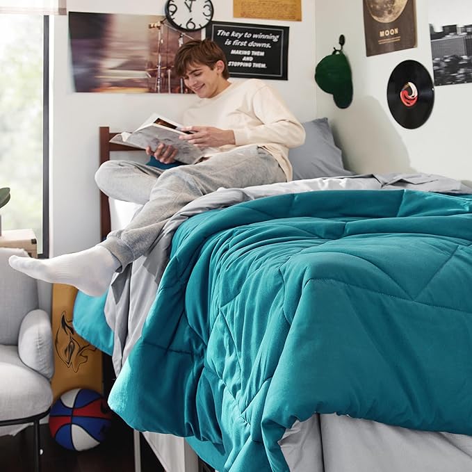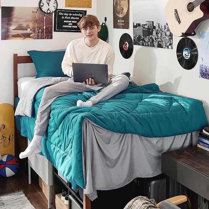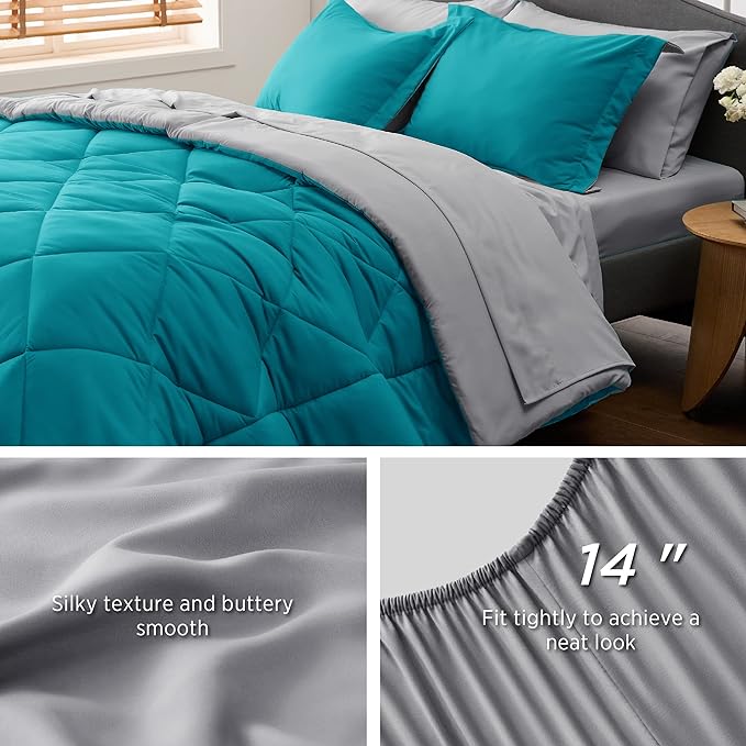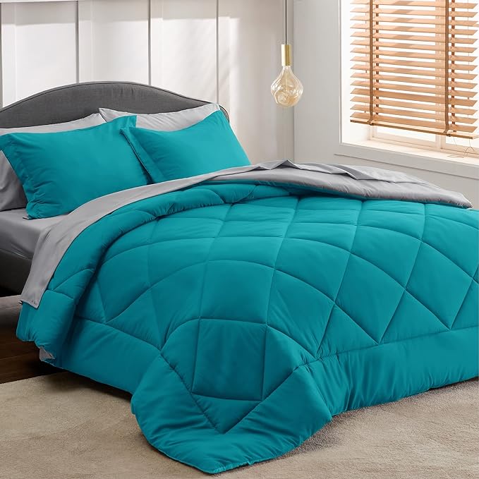 Bedsure Teal Twin Comforter Set - 5 Pieces Reversible Twin Bed in a Bag, Extra Long Twin Bed Set with Comforters, Sheets, Pillowcase & Sham, Twin Bedding Sets for College