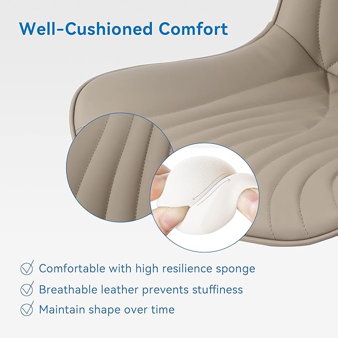 YOUNIKE Office Chair, Desk Chair with Wheels, Home Office Computer Task Chairs, Modern Faux Leather Padded Vanity Chair, Adjustable Swivel Armless Office Chairs with Back, Khaki