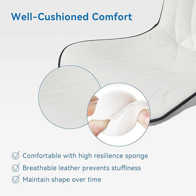 YOUNIKE Office Chair, Armless Desk Chair with Wheels, Home Office Computer Task Chairs, Modern Faux Leather Upholstered Vanity Chair, Adjustable Swivel Rocking Office Chair with Back, White