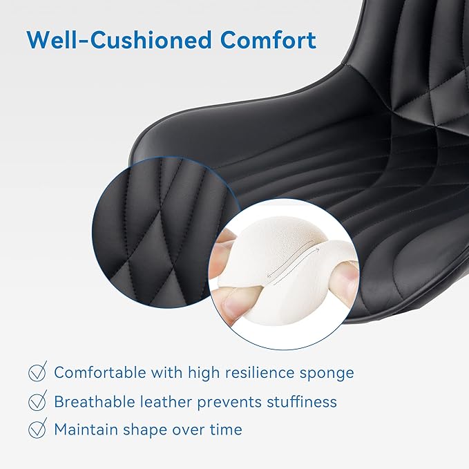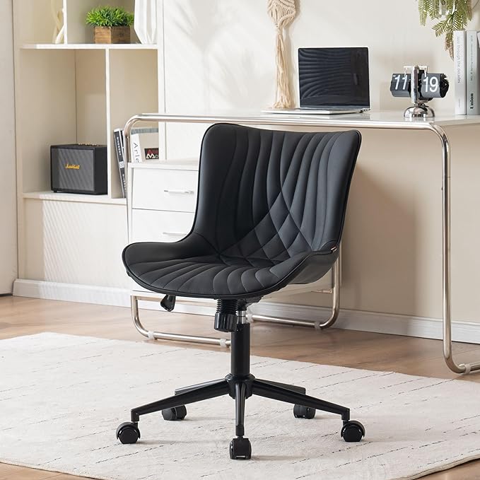 YOUNIKE Office Chair, Armless Desk Chair with Wheels, Home Office Computer Task Chairs, Modern Faux Leather Padded Vanity Chair, Adjustable Swivel Rocking Chair with Back, Black