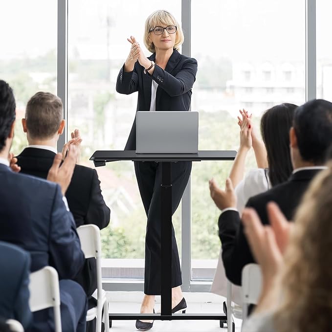 edx Small Standing Desk Mobile Portable Rolling Laptop Desk on Wheels, Adjustable Height for Home Office
