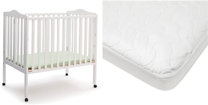 Delta Children Folding Portable Mini Baby Crib with Mattress + American Baby Waterproof Mini Crib Mattress Protector
