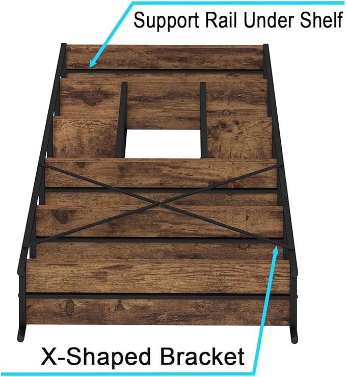 LVB Rustic Bookcases and Book Shelves, Metal Wood 6 Tier Bookshelf and Book Rack Storage, Industrial Vertical Display Etagere Book Case 6 Shelf, Vintage Large Book Shelf for Bedroom Living Room, Brown
