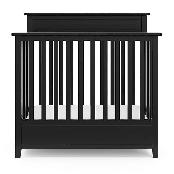 Storkcraft Petal 4-in-1 Convertible Mini Crib (Black) – GREENGUARD Gold Certified, Converts to Daybed and Twin-Size Bed, includes Bonus 2.75-inch Mini Crib Mattress