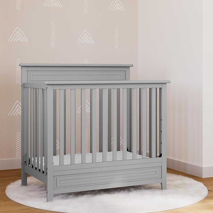 STORKCRAFT Petal 4-in-1 Convertible Mini Crib (Pebble Gray) – GREENGUARD Gold Certified, Converts to Daybed and Twin-Size Bed, Includes Bonus 2.75-inch Mini Crib Mattress