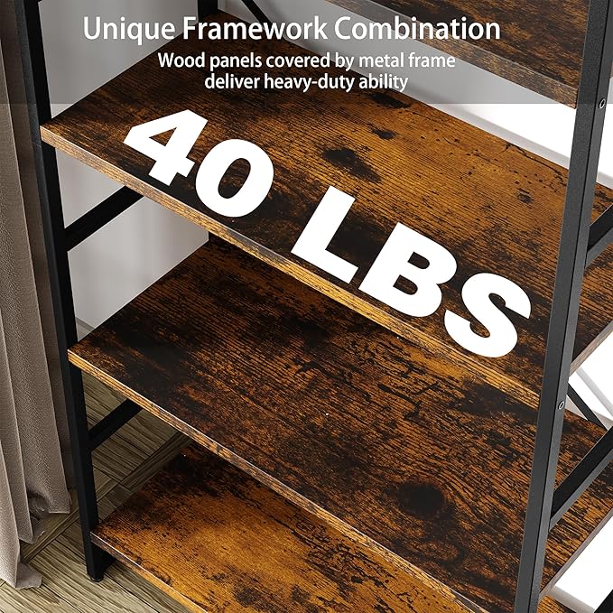 Shintenchi Bookshelf, 5 Tier Bookshelf, Tall Bookcase Shelf for CDs/Movies/Books, Home Office Bookcase Shelf Storage Organizer, Modern Book Shelf for Bedroom/Living Room/Home Office, Rustic Brown