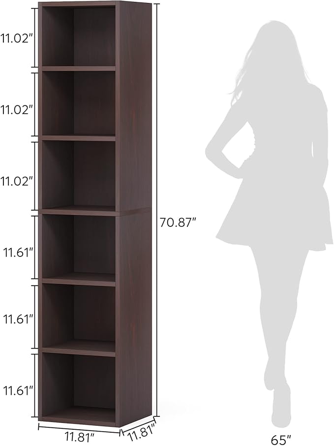 70.9 Inch Tall Narrow Bookcase, Corner Bookshelf 6 Tier Cube Display Shelf Storage Organizer for Small Space, Brown