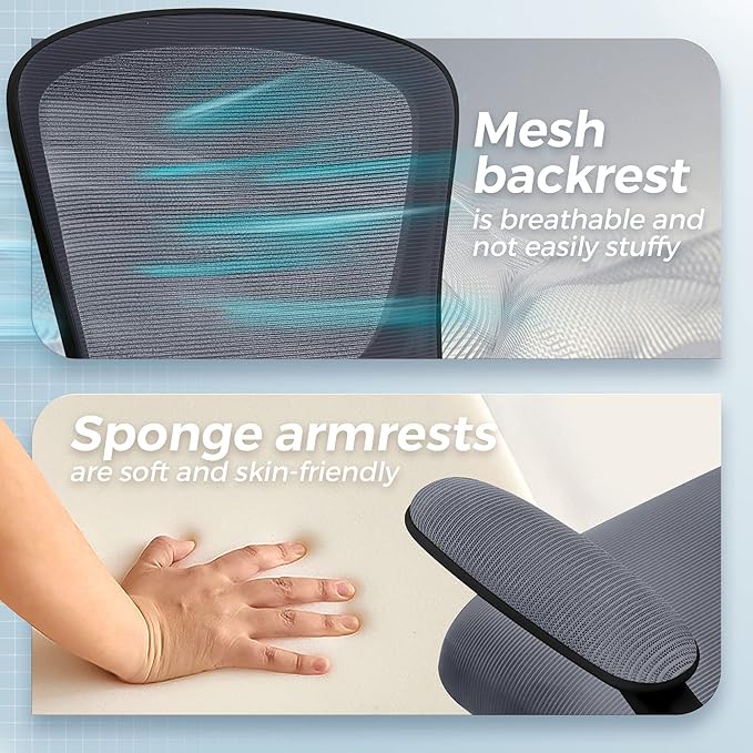 KERDOM Office Chair, Ergonomic Desk Chair, Mesh Computer Chair Height Adjustable, Comfy Swivel Task Chair with Wheels and Flip-up Arms