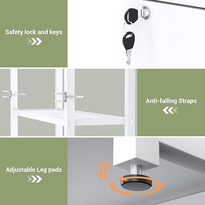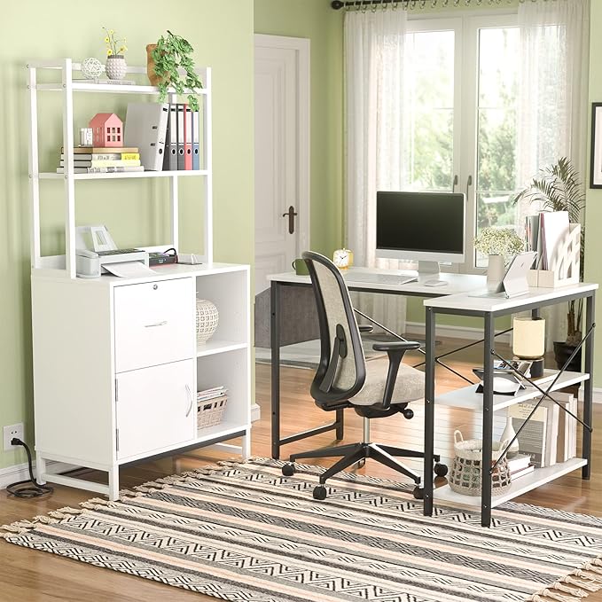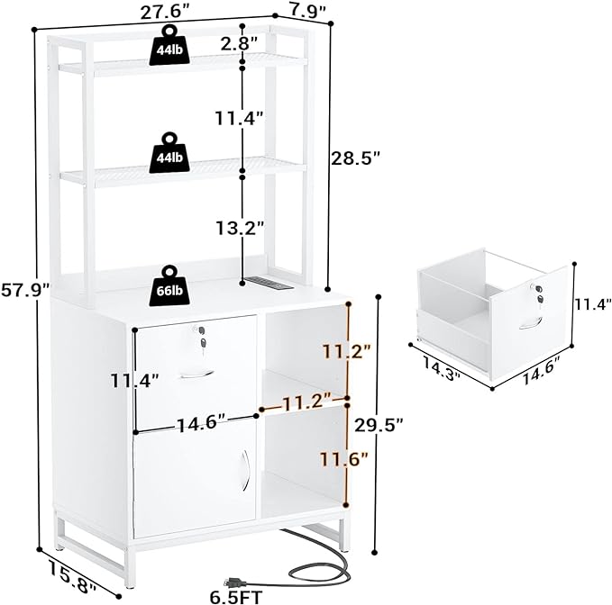 Homieasy Vertical Filing Cabinet with Lock & Charging Station, Large Drawer Wood File Cabinet with Bookshelf, Printer Stand with Open Storage Shelf, fits Letter Size for Home Office, White