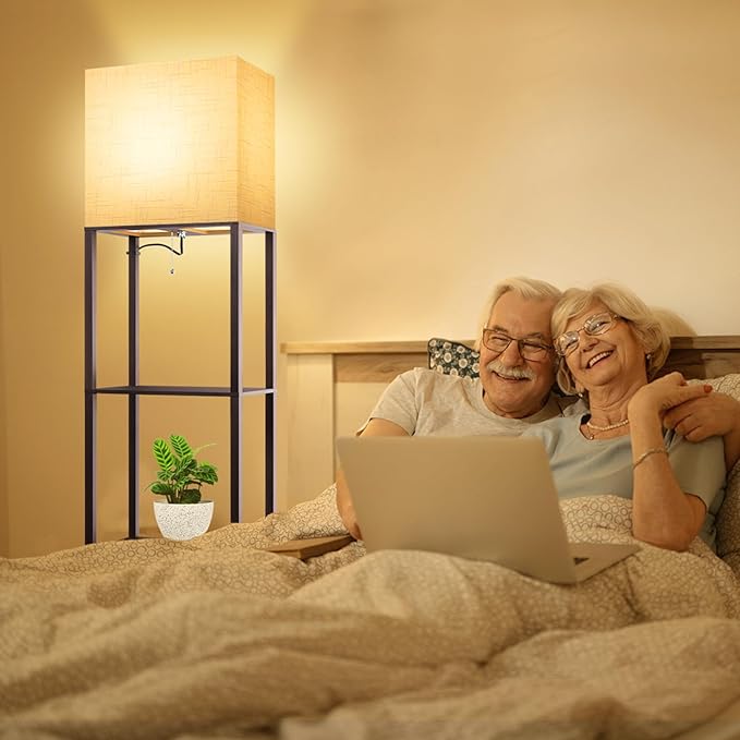 About This ➤【Widening Shelves Design, More Space for Display】 - This Plus version floor lamp with shelves now has more...