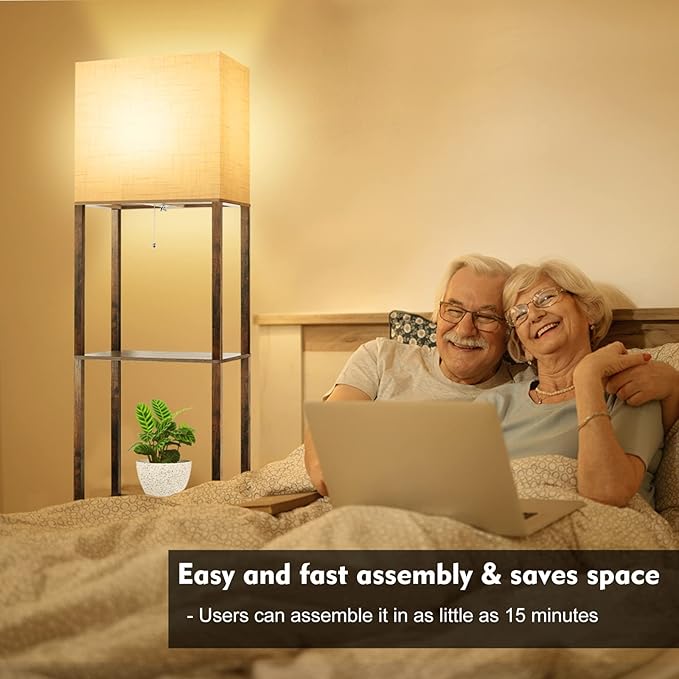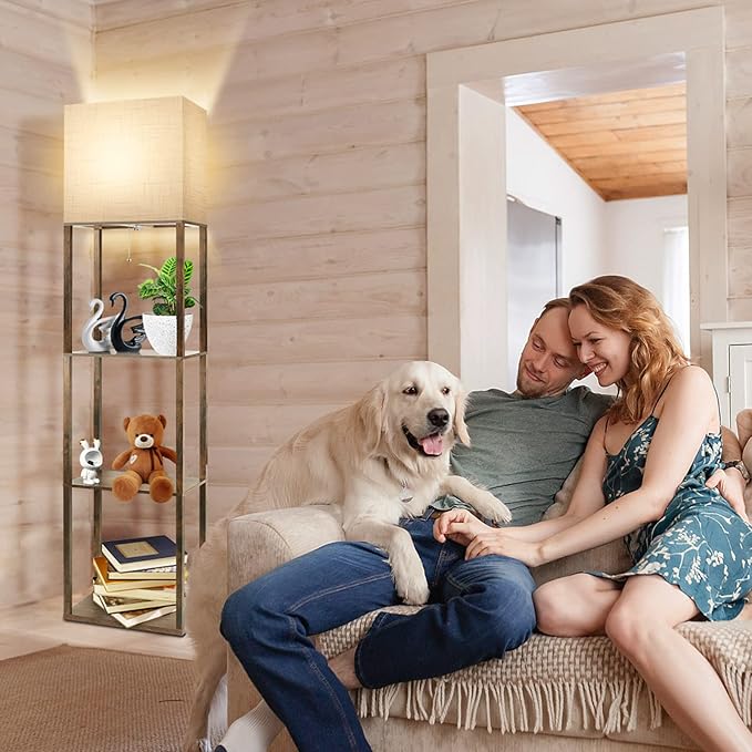 About This ➤【Widening Shelves Design, More Space for Display】 - This Plus version floor lamp with shelves now has more...