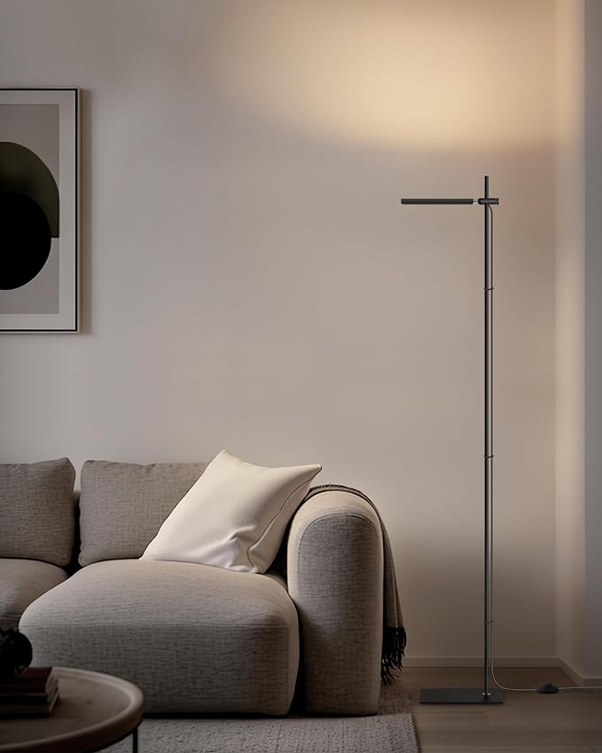Modern Floor Lamp, 360 Degree Rotation Sky LED floor lamp Office Lighting, Bright LED Standing Pole Light, Tall lamps for Living Room,Bedroom,Reading,Study Room (Black)