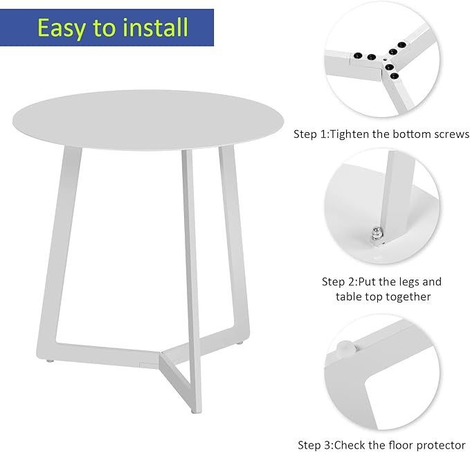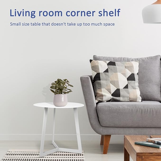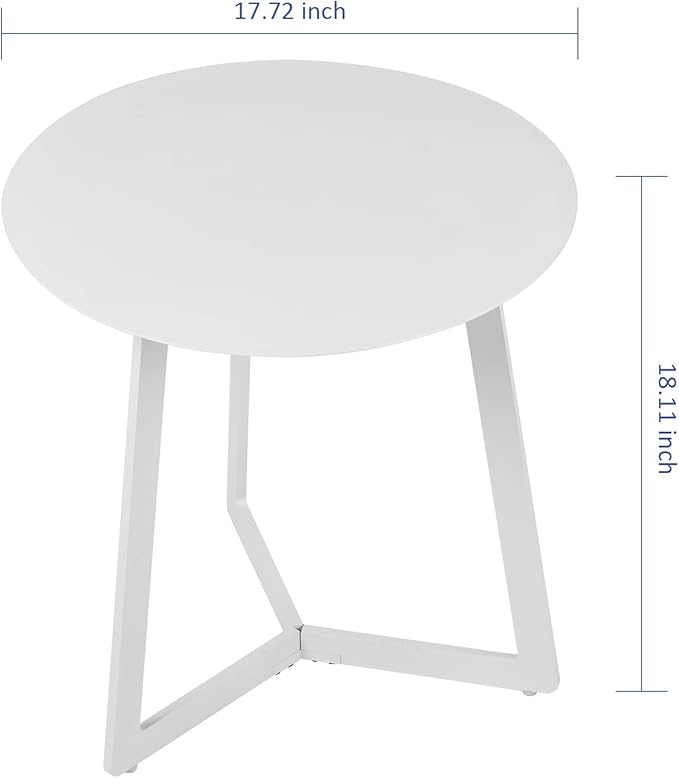 17.7 inch Round End Table, Modern Metal Side Table, Coffee Table for Living Room Sofa Small Coffee Table, Easy to Assemble (White)