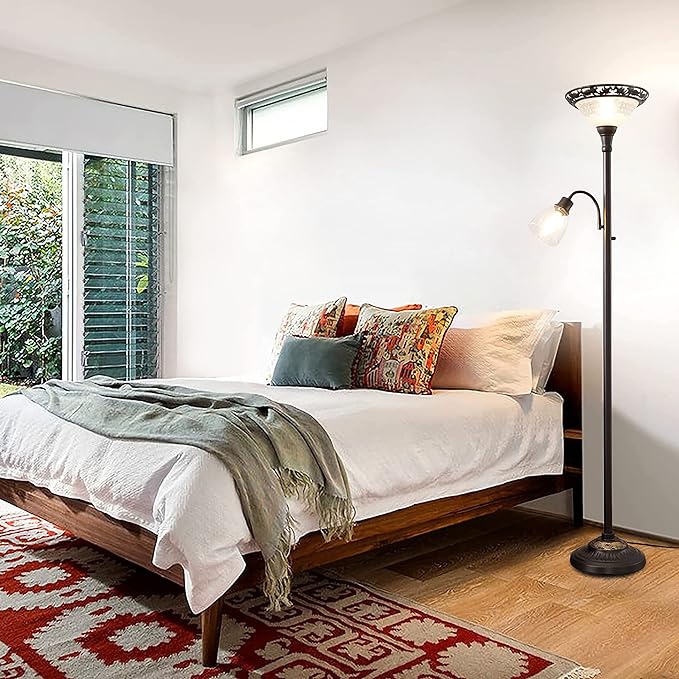 About This 【Floor Lamp for Bedroom Not Easy Tipping Over】 It has an attractive glass shade that's thick enough you...