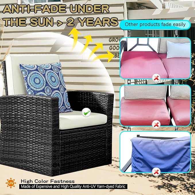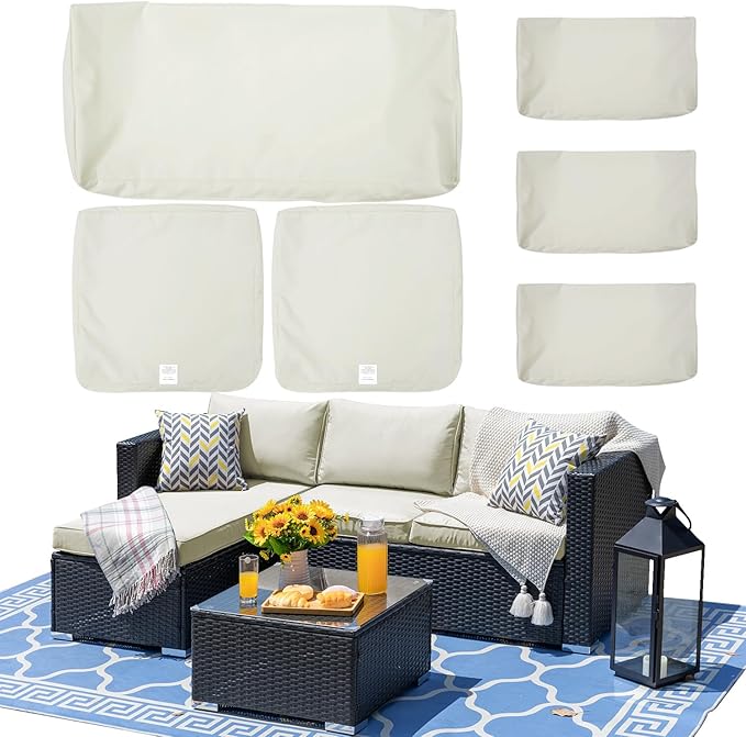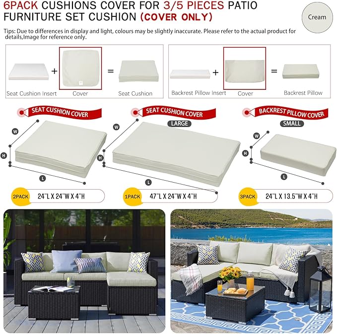 ClawsCover 6Pack Outdoor Seat and Back Cushions Replacement Covers Fit for 3 Pieces 3-Seater Wicker Rattan Patio Furniture Conversation Set Sectional Couch Chair,Cream-Include Cover Only