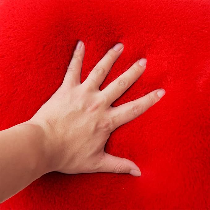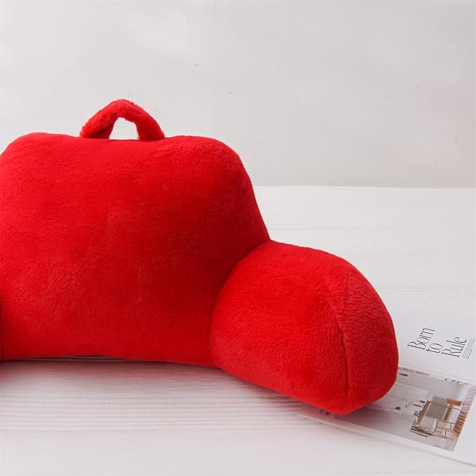 A Nice Night Faux Fur Reading Pillow Bed Wedge Large Adult Children Backrest with Arms Back Support for Sitting Up in Bed/Couch for Bedrest, Red