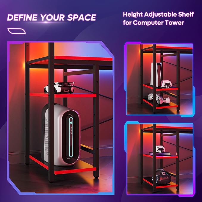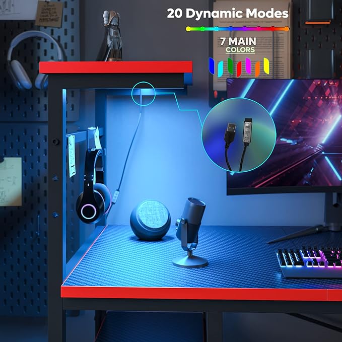 About This 【Unique & Immersive LED Light】: The PC table is equipped with LED lights which have 7 color selections...