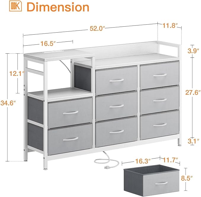 About This 【Built-in Charging Station】This dresser is equipped with a built-in power strip featuring 3 AC outlets, 1 USB port,...