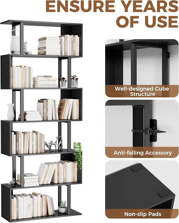About This 【5/6-tier S-shaped Bookcase】Perfect for organizing books, magazines, plants and other items in a neat and stylish manner. 【Durable...