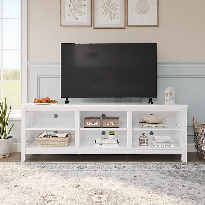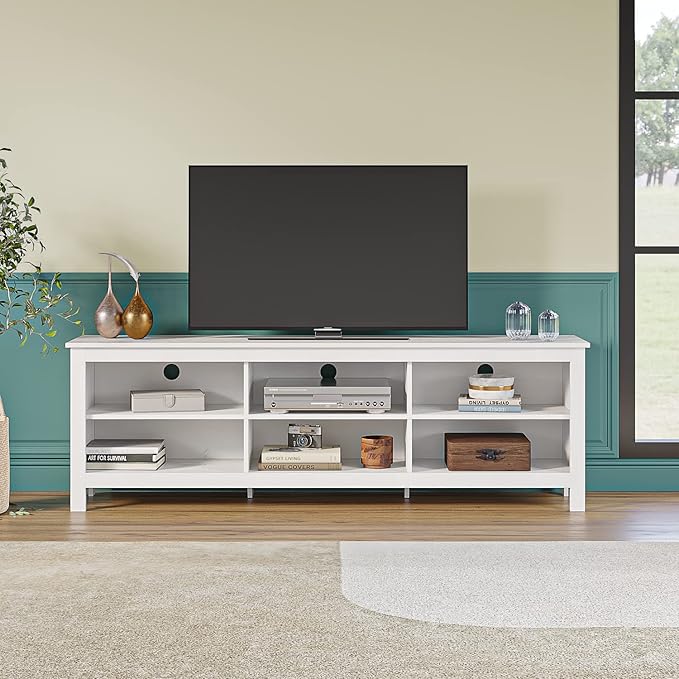 Panana TV Stand with 6 Cubby for 75 inch TV, Television Stands Entertainment Center Media Stand TV Table for Living Room, Bedroom (White 70 inch)