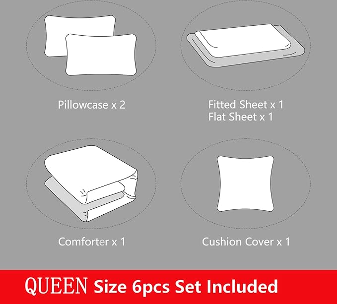 About This 【What Can You Get】:This 6 Piece Bed in A Bag includes 1 Queen size 1x Comforter:(90 x 90...