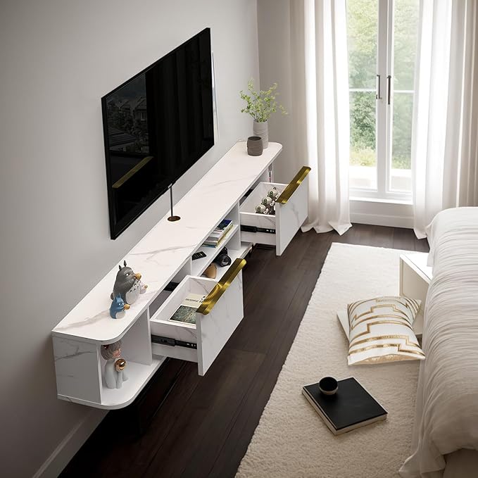 Pmnianhua Floating TV Stand with 2 Drawers,70'' Wall Mounted TV Shelf,Floating Shelf Under TV,Floating TV Console with Cabinets for Bedroom Living Room(White)