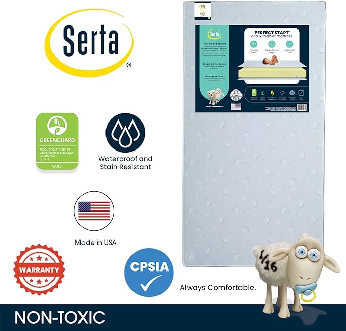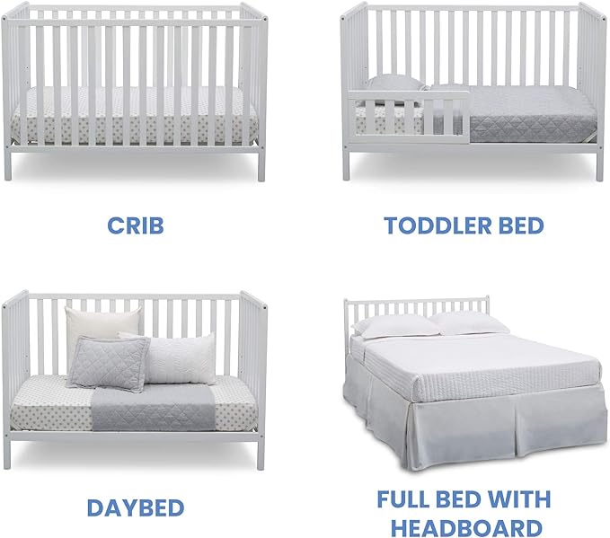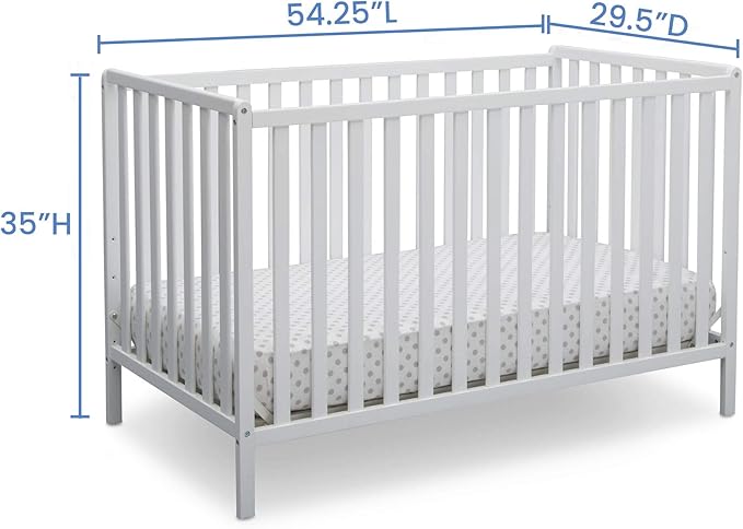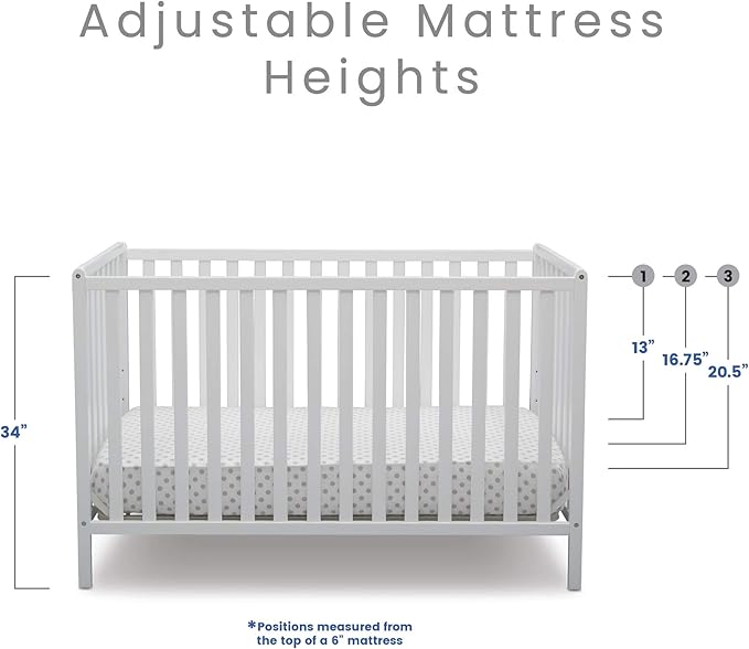 Delta Children Heartland 4-in-1 Convertible Crib Infant Changing Table with Pad + Serta Perfect Start Crib Mattress, Bianca White
