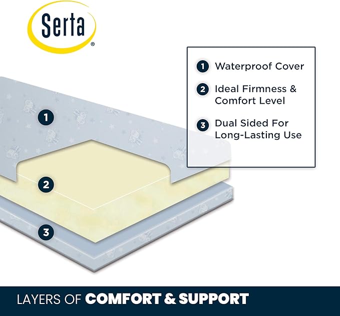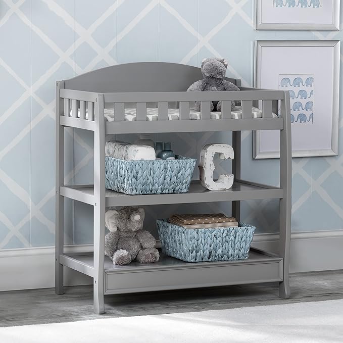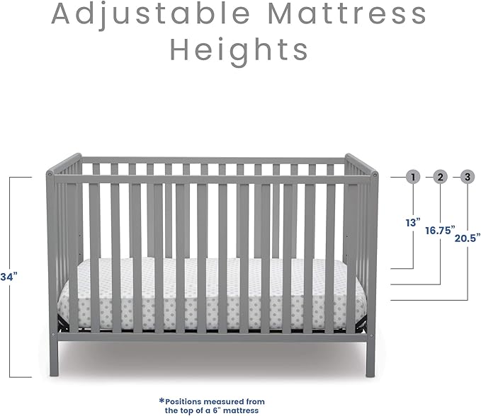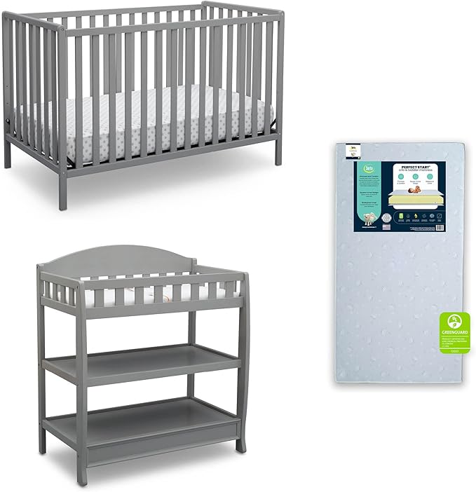 Delta Children Heartland 4-in-1 Convertible Crib Infant Changing Table with Pad + Serta Perfect Start Crib Mattress, Grey