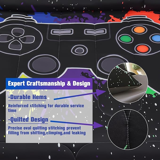 About This [Game Controller Design]: 3D video game controller comforter with rainbow splatter colors, making it a piece of artistic...