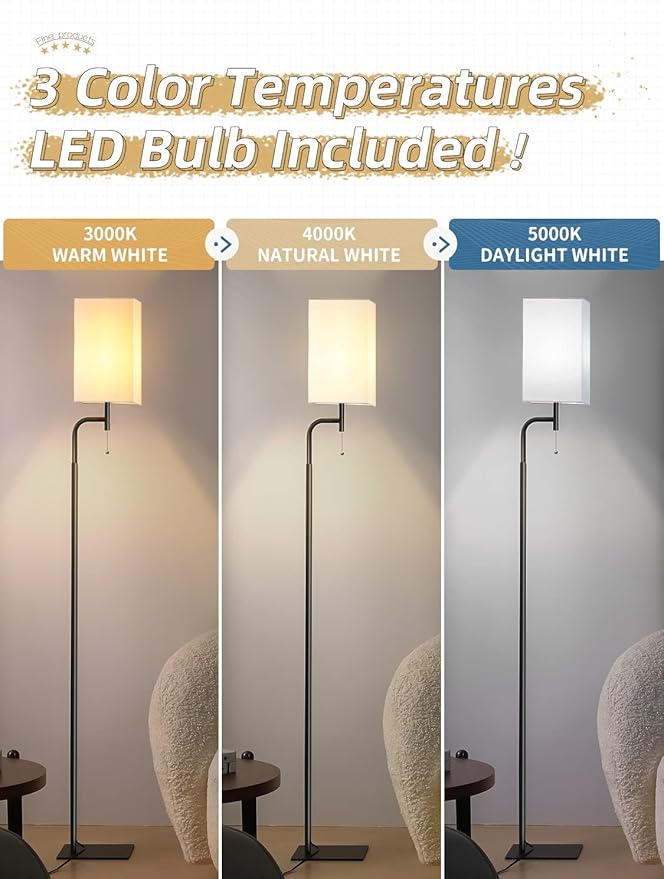 About This FLOOR LAMPS WITH 3 COLOR TEMPERATURES BULB: The floor lamp for bedroom come with a 3 color temperatures...