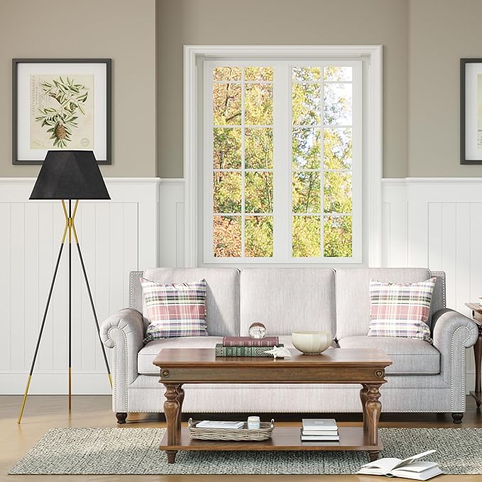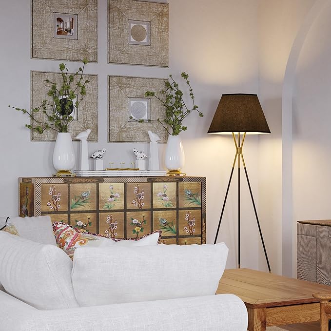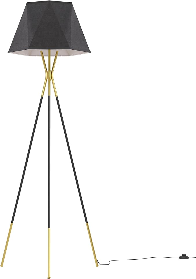 Inlight 65" Modern 1-Light Black and Gold Tripod Floor Lamp with Geometric Design Shade and Black Metal Legs, Bulb Not Included, IN-0808-1-BK