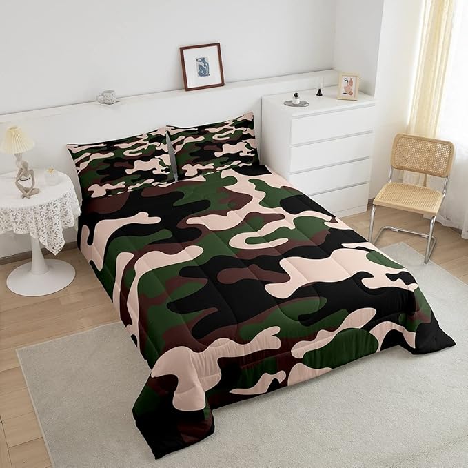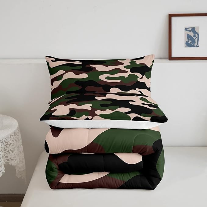 Twin Size Camouflage Comforter Set 3Pcs Kids Bedding Set for Boys Girls Teens 1 Comforter & 2 Pillowcases(Twin,Army Green) Boys