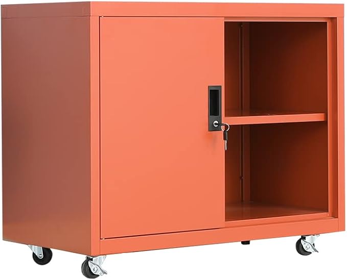 Metal Mobile Lateral File Cabinet, Storage Locker,Printer Stand with Open Storage Shelves for Office,School,Home,Living Room. (Orange)