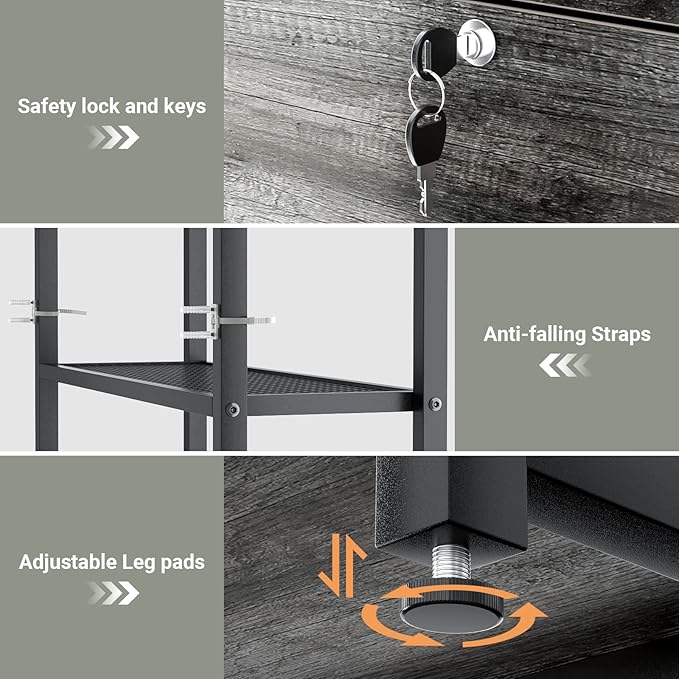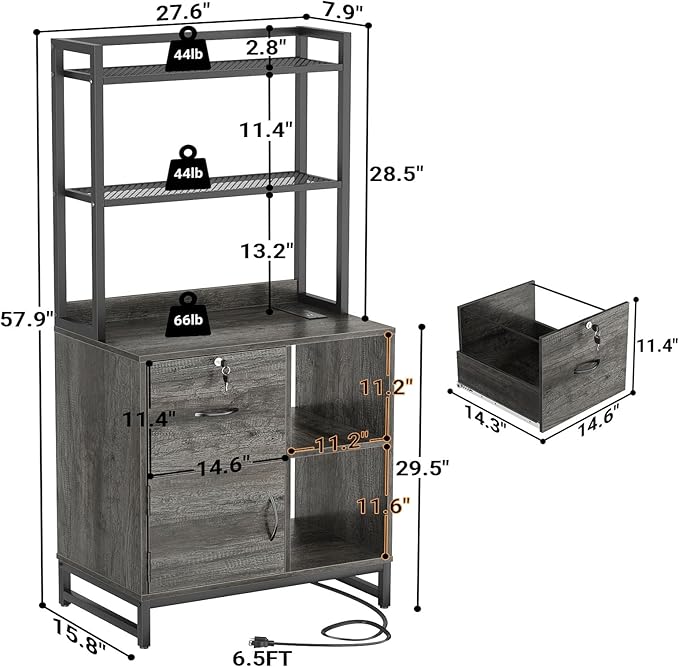 Homieasy Vertical Filing Cabinet with Lock & Charging Station, Large Drawer Wood File Cabinet with Bookshelf, Printer Stand with Open Storage Shelf, fits Letter Size for Home Office, Grey Oak