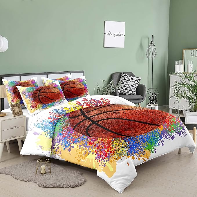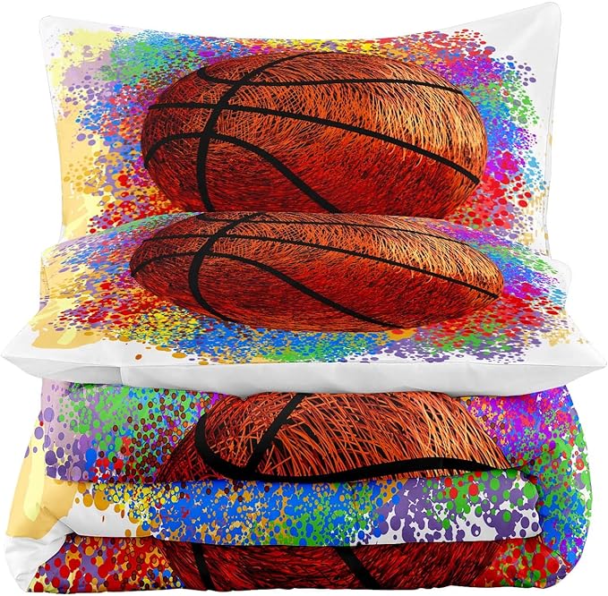 Tailor Shop Twin Size Comforter Set,Basketball Bedding Set for Boys Kids Teens,Sports Kids Basketball Comforter Sets with 1 Pillowcases