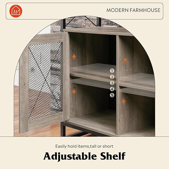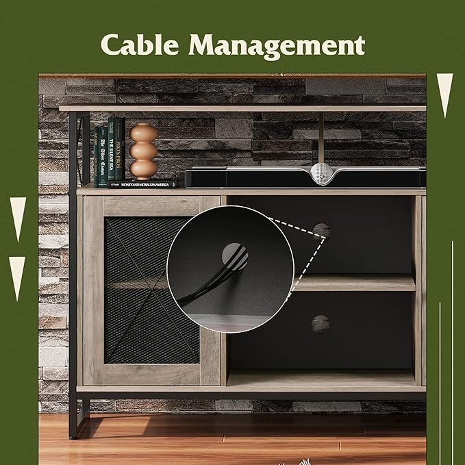 WLIVE TV Stand 55 inch TV,Tall Entertainment Center with Storage, Farmhouse Industrial TV Console for Bedroom Living Room, Greige