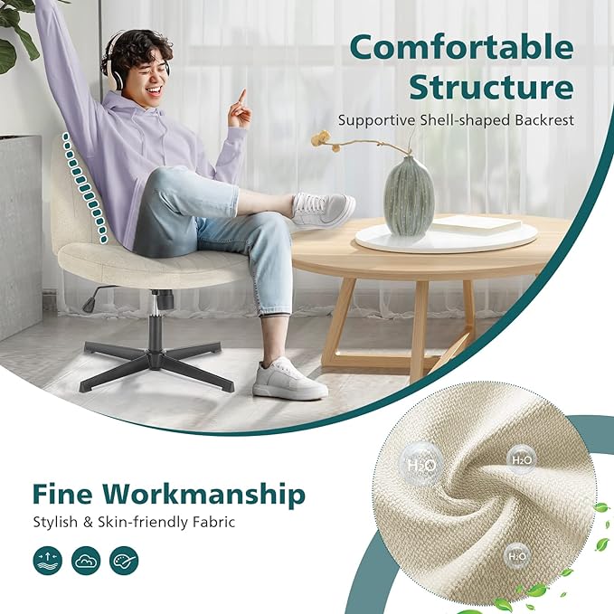OLIXIS Cross Legged Armless Wide Adjustable Swivel Padded Home Office Desk Chair, Beige