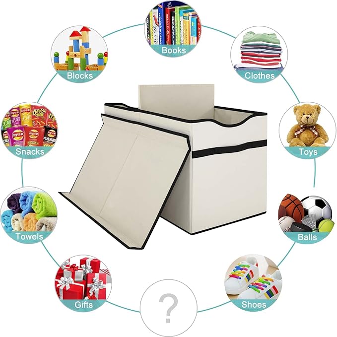 VICTOR'S Kids Toy Box Chest - Extra Large Lightweight Collapsible Toy Storage Organizer Boxes Bins Baskets for Kids, Boys, Girls, Nursery Room, Playroom, Closet (Beige)