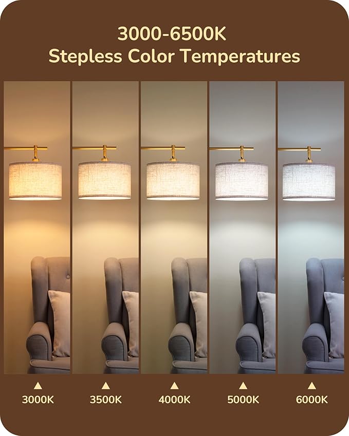 EDISHINE Dimmable Floor Lamp, Standing Lamp with Remote Control, E26 Socket, ACR Floor Lamp with Beige Shade for Bedroom, Living Room, Office, LED Bulb Included (Modern-Gold)