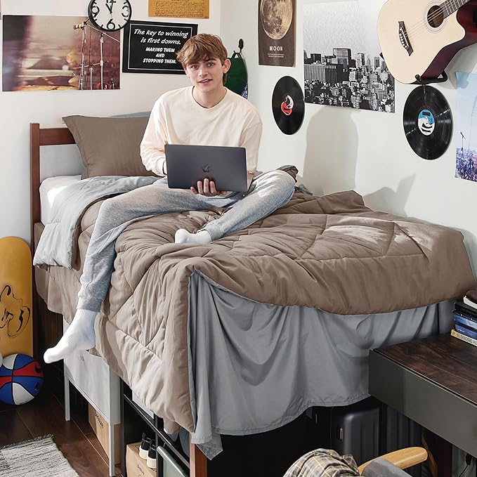 Bedsure Taupe Twin Comforter Set - 5 Pieces Twin Bed in a Bag, Extra Long Twin Bed Set with Comforters, Sheets, Pillowcase & Sham, Twin Bedding Sets