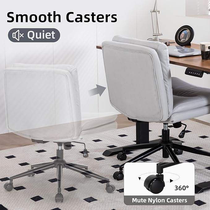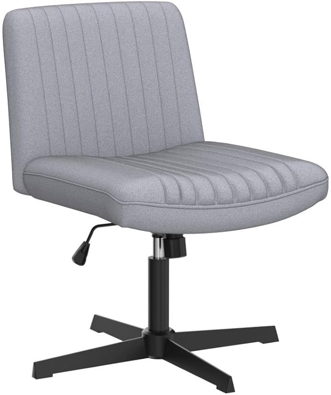Armless Office Chair with Wheels Wide Desk Chair Leather Mid Back Accent Chair Padded Swivel Vanity Chair for Girl Women Computer Task Chair for Home Office (Suede Fabric, Light Grey)
